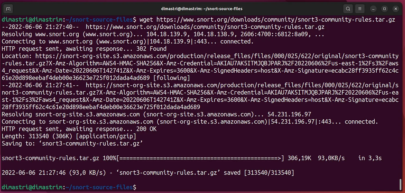 wget https://www.snort.org/downloads/community/snort3-community-rules.tar.gz