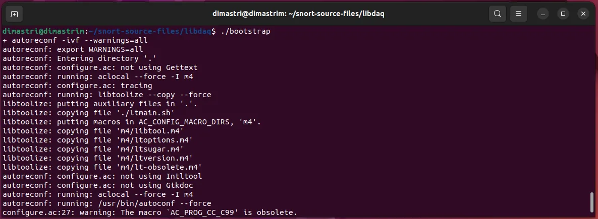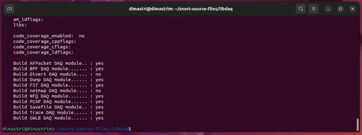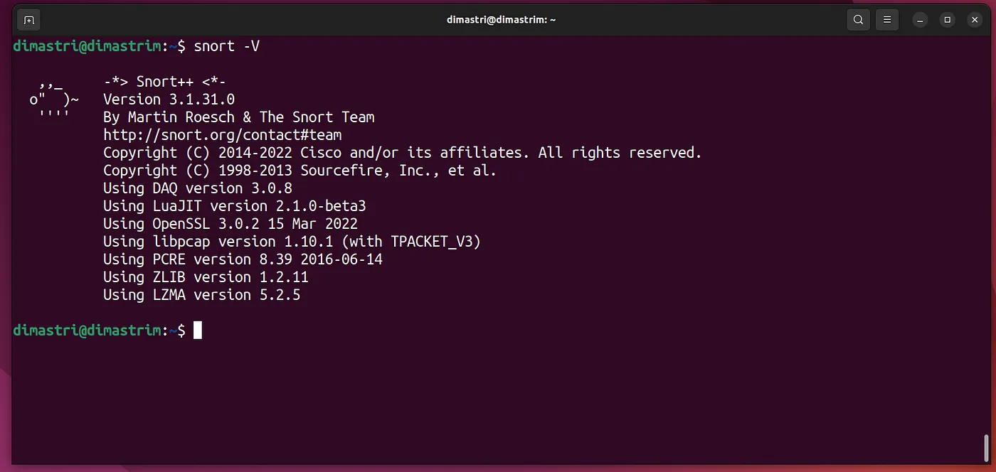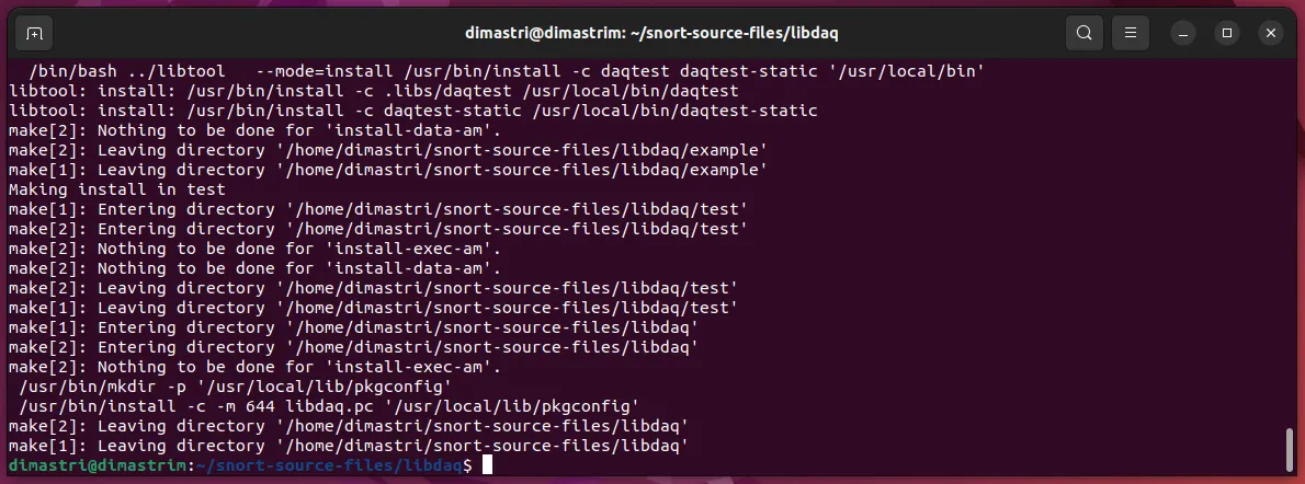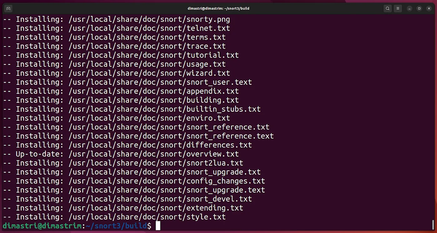 Setelah semua dependencynya telah diinstall, saya lakukan instalasi snort dengan langah seperti berikut.