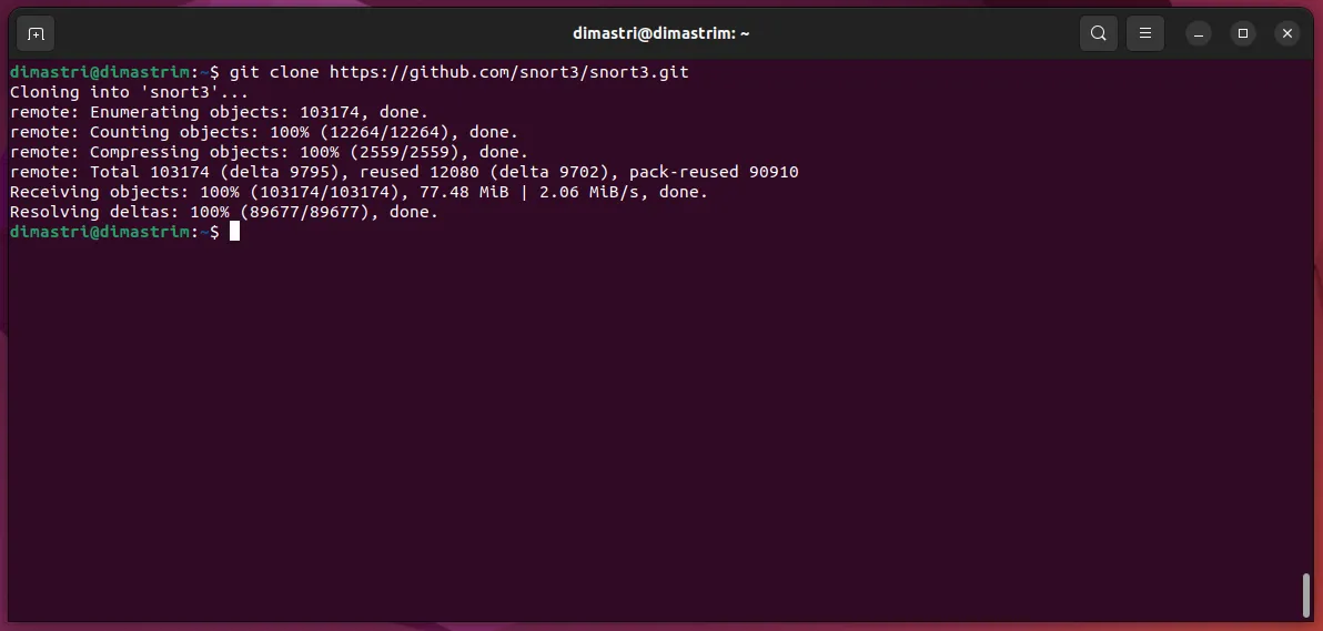 a. Menyalin source code dari snort 3 dari github repository dan cd ke dalamnya dengan perintah