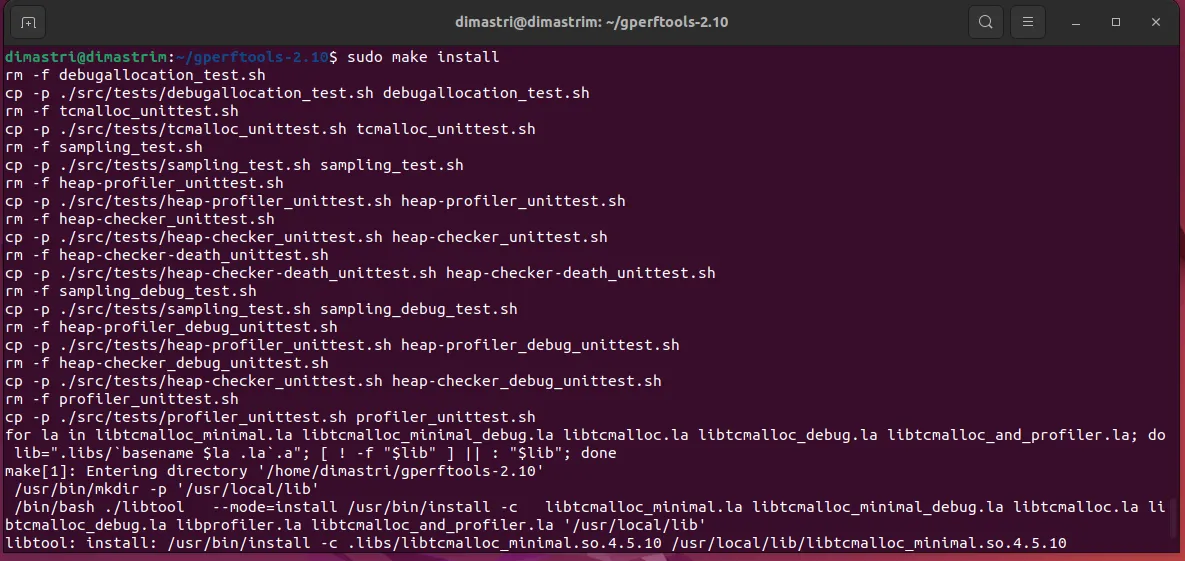 wget https://github.com/gperftools/gperftools/releases/download/gperftools-2.10/gperftools-2.10.tar.gzb. Mengekstrak file source dan cd ke dalamnya