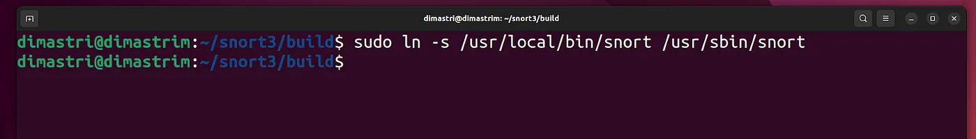 e. Membuat symblolic link untuk /usr/sbin/snort